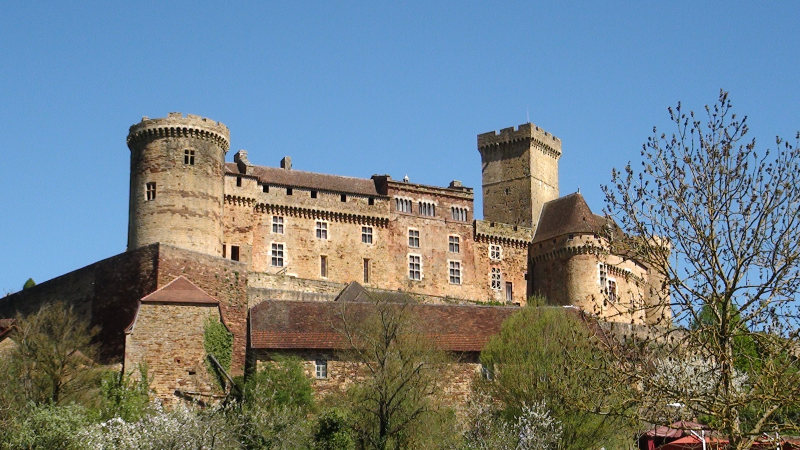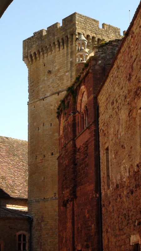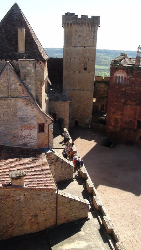 L’aventure continue à la grotte préhistorique du Pech-Merle. Les peintures rupestres avaient l’air magnifiques mais malheureusement, la visite s’est vite terminée pour Mamie et moi. Ce genre d’endroit, quand on est claustrophobe, c’est pas très rigolo…..le guide était gentil et il nous a laissé sortir au bout de cinq minutes. La grotte était très humide et il y faisait un peu frais. Ensuite, nous avons déjeuné et sommes partis au château de Castelnaud-Bretenoux. D’en haut de la tour, nous avions un panorama merveilleux :