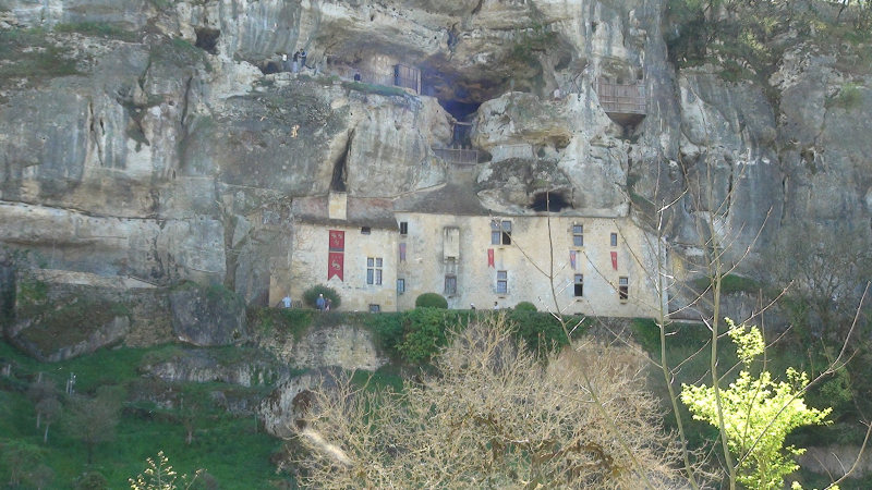 Allez, encore du camping-car pour aller à la maison forte de Reignac (30 mn). La maison forte de Reignac, c’est une espèce de château troglodytique donc, creusé dans une falaise.