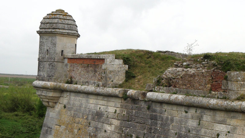 Bon, à midi, une salade de pommes de terres rudimentaire (sic) mais délicieuse (la cuisine de mamie, quand c’est pas délicieux, c’est succulent….) puis nous avons visité le village de Brouage. C’était un magnifique petit village avec des remparts tout autour. Dans les remparts, à chaque angle, des petites cabanes permettant aux gardes qui vivaient ici de surveiller leur cité. Mais, tout n’est jamais tout blanc, après-midi très pluvieuse…. (léger crachin pendant la visite de Brouage)