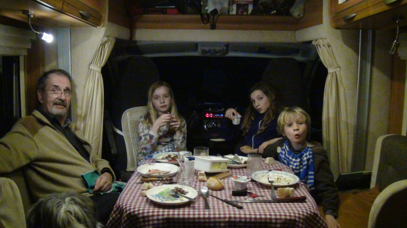Élisa est arrivée hier, dans la soirée. Bon, nuit très à l’étroit entre Élisa et Simon dans le lit conçu pour 2 personnes…