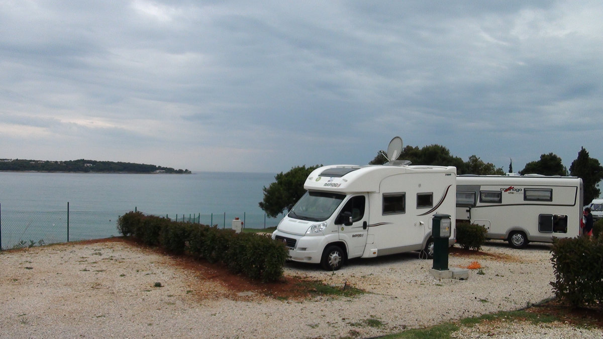 Nous traversons rapidement la fenêtre marine de la Slovénie (malgré les caprices du GPS qui semble vouloir nous y faire rester, résultat : demi-tour délicat dans un village en cul de sac). Jolies vues sur Trieste et la campagne. Nous entrons en Croatie et, après quelques coups d’œil maritimes, arrivons vers 17h à Novi Grad (oui, No
