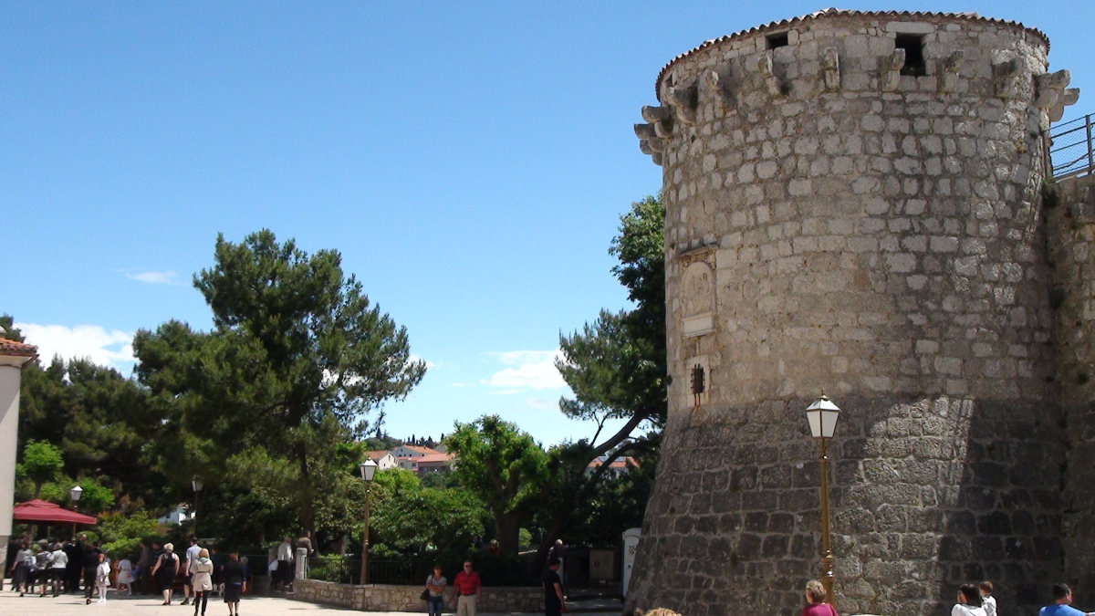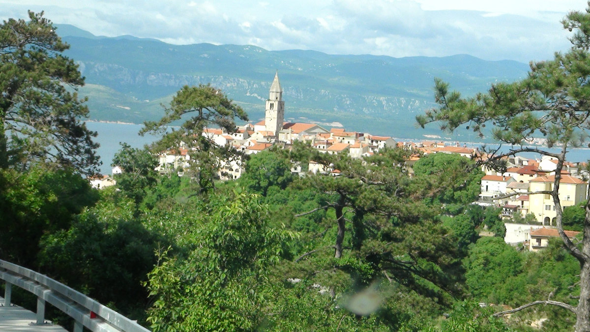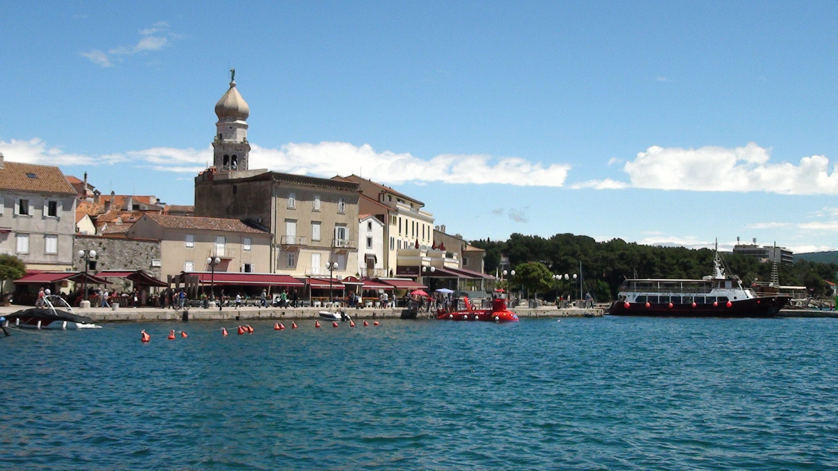 Krk a été occupée par les Romains et par des peuples slaves. La cathédrale réunit trois parties : le clocher à bulbe traditionnel ; une chapelle paléochrétienne et une église romane. En se rapprochant encore de la mer, nous trouvons les fortifications d’un château du Moyen Age qui sert de cadre à des manifestations de plein air. Tout cela forme un ensemble intéressant, tout serré et imbriqué au milieu des maisons, auquel on accède par de charmantes ruelles et qui débouche évidemment sur un port tellement joli.