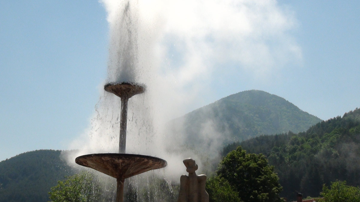 Nous nous arrêtons à Sapareva Bania pour admirer la toute petite église Saint Nicolas et le geyser (103° toutes les 6 secondes) ; geyser domestiqué, mais geyser quand même, l’odeur de soufre dans l’air en témoigne..