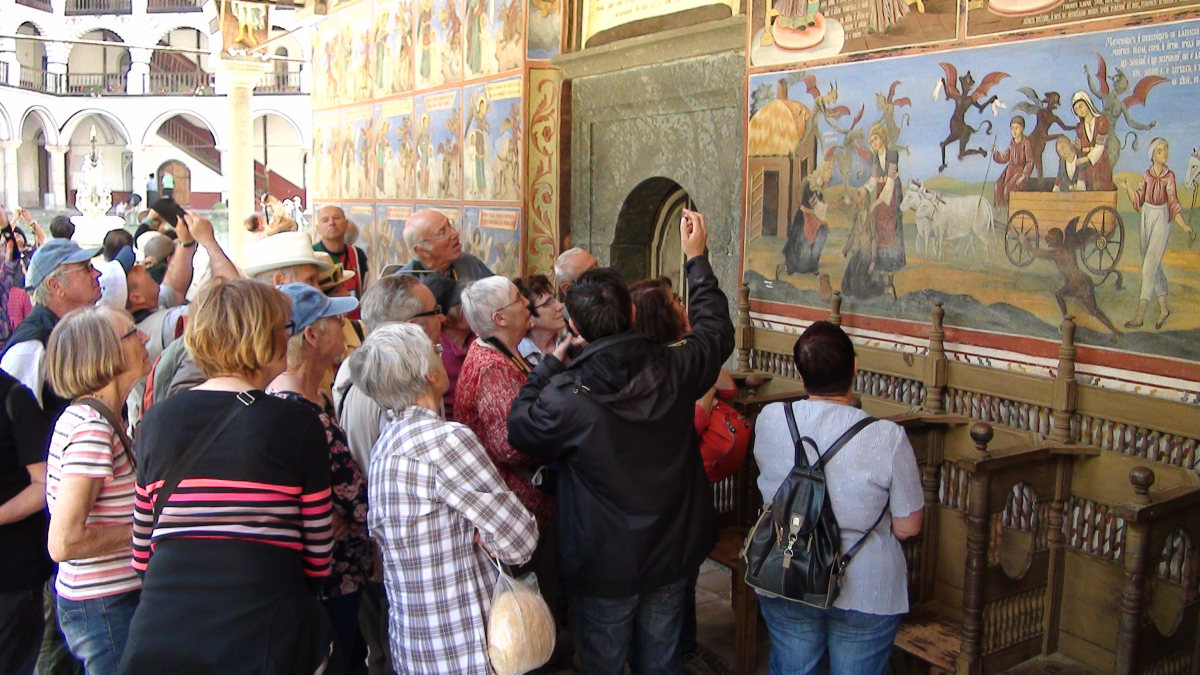 Arrivés peu avant l’heure fixée (15h) à Rila, nous visitons le monastère avec les agréables commentaires de George.