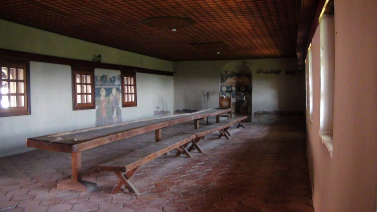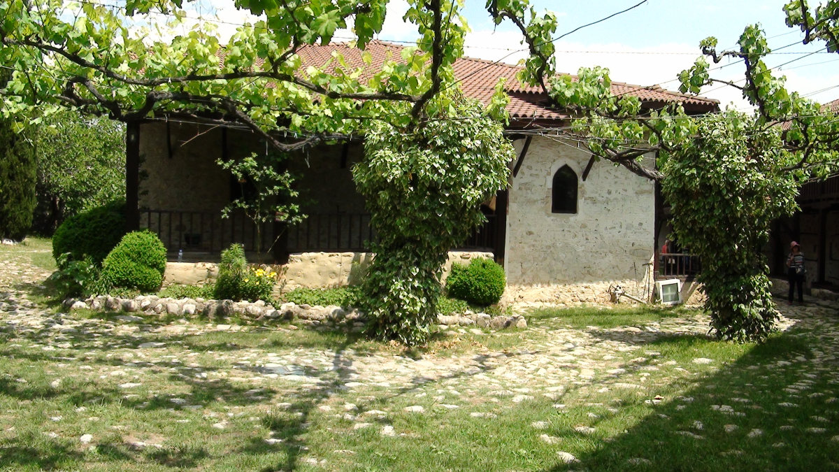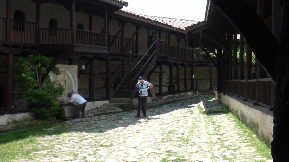 Après avoir traversé quelques jolis paysages, nous arrivons à Melnik assez tard et décidons de monter immédiatement au monastère de Rojen. Plus simple que Rila, il a néanmoins un charme incontestable avec sa cour pavée entourée de balcons et ombragée de treilles.