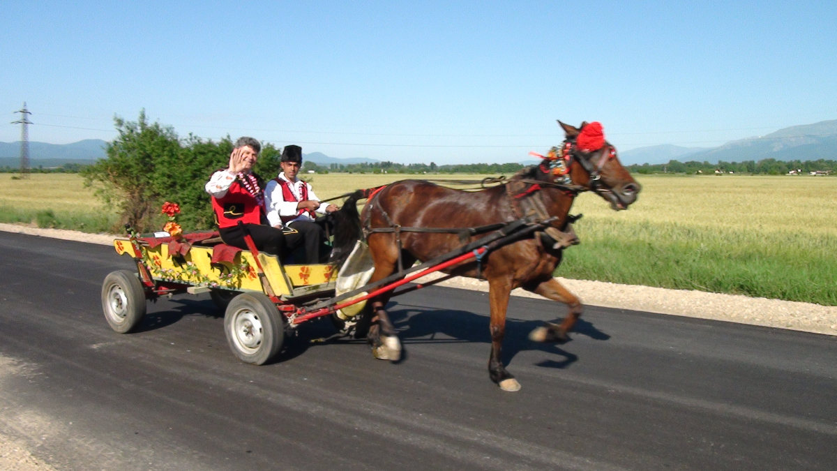 Nous avons ensuite repris la route, car d’autres paysages nous attendent. Au gré des goûts et des envies, chaque équipage visite ou pas les différents points d’intérêts évoqués au briefing de la veille. En ce qui nous concerne, nous avons aujourd’hui « zappé » ces étapes touristiques, mais nous avons pioché pour vous dans les photos de 2012 deux vues de Zheravna, village qui semble avoir fait l’unanimité des voyageurs.