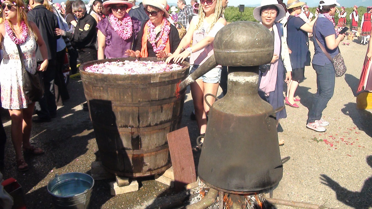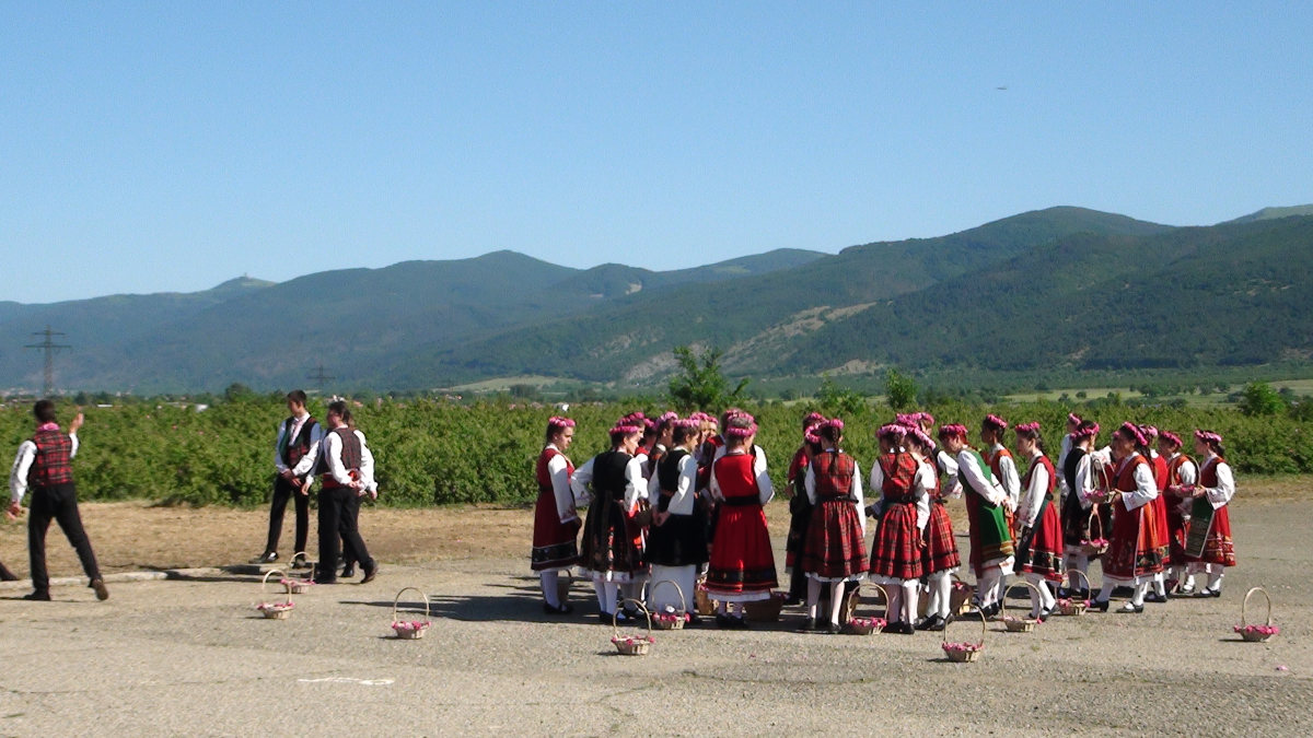 Nous avons tout de même pu voir la Reine de près et cueillir nous mêmes quelques unes de ces roses damascènes, pas les plus belles sans doute, mais qui exhalent une odeur d’une qualité et une force absolument extraordinaire. Nous avons admiré les jeunes en costumes qui dansent sans trêve ni repos. Nous avons vu une distillerie ancienne en fonctionnement et nous sommes même lavés les mains à l’eau de rose. Nous avons aussi été arrosés de pétales par un drone !