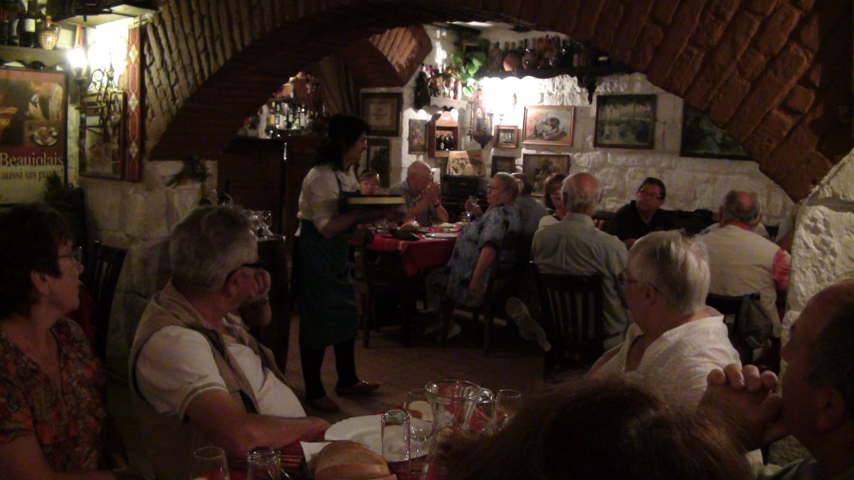 C’est l’heure de déjeuner et un restaurant-cave nous reçoit. Repas simple, mais accueil chaleureux en français et vins de qualité.