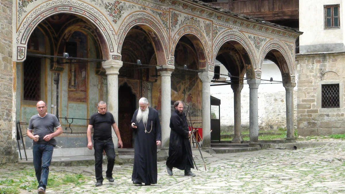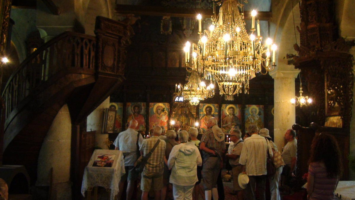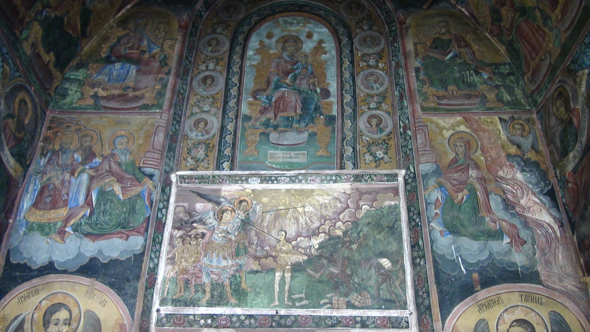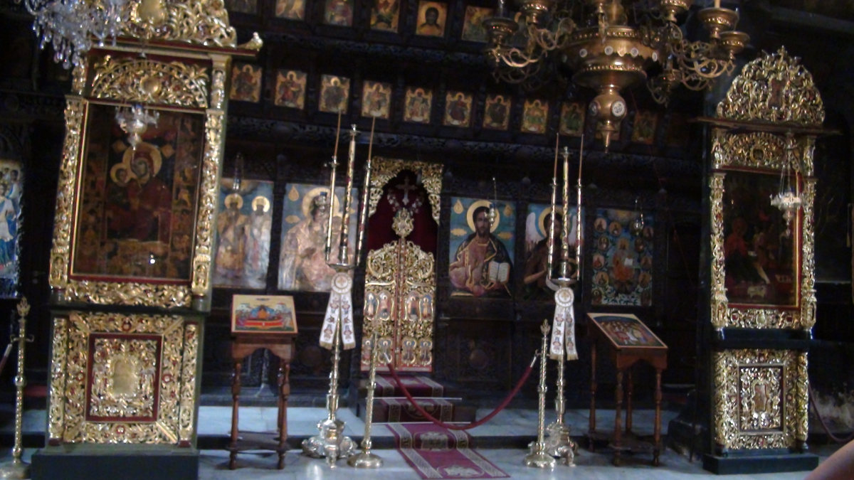 A l’intérieur, un pope traduit par notre guide nous explique assez longuement le renouveau national et la guerre de libération, l’activité repliée sur les villages de montagne mieux protégés de l’occupant et les sculptures sur bois faites par les artisans locaux au point de créer une véritable « école » locale de leur art encore fameuse aujourd’hui.