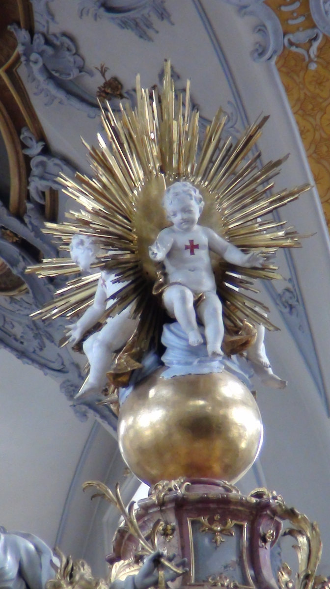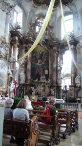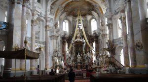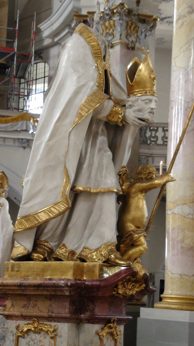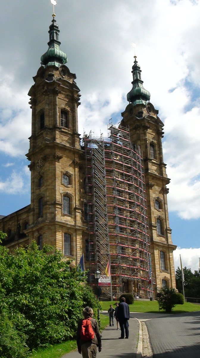 Plus loin, c’est la basilique des Quatorze Saints, un summum du Baroque. Je ne vous en raconte pas l’histoire, les curieux trouveront bien un Wiki, je vous laisse juste les photos, garanties pur sucre ! La troisième photo, c’est paraît il Saint Denis qui a perdu la tête … Ah, c’était donc ça ???