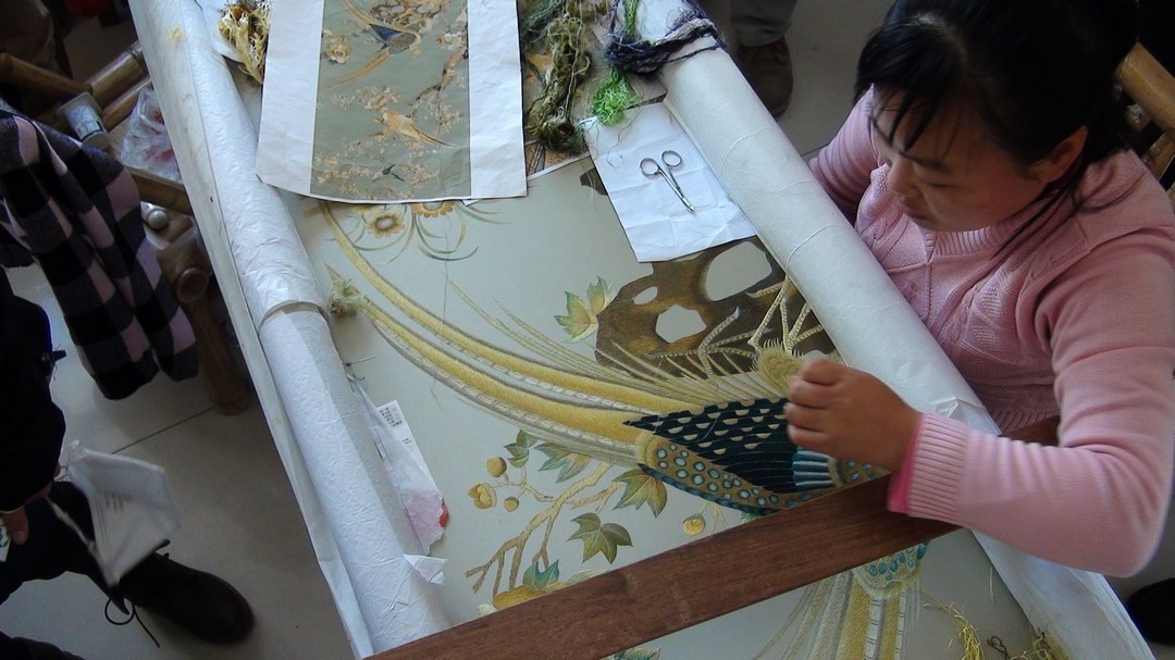 Après un décollage pour certains avec le grand maître Taïshi qui nous accompagne, nous sommes partis en bus vers un atelier de broderie de soie, une merveille, puis un autre de sculpture sur noix (si, si, !). Et pas de commerce, le prix de ces bijoux est bien au dessus de nos moyens !