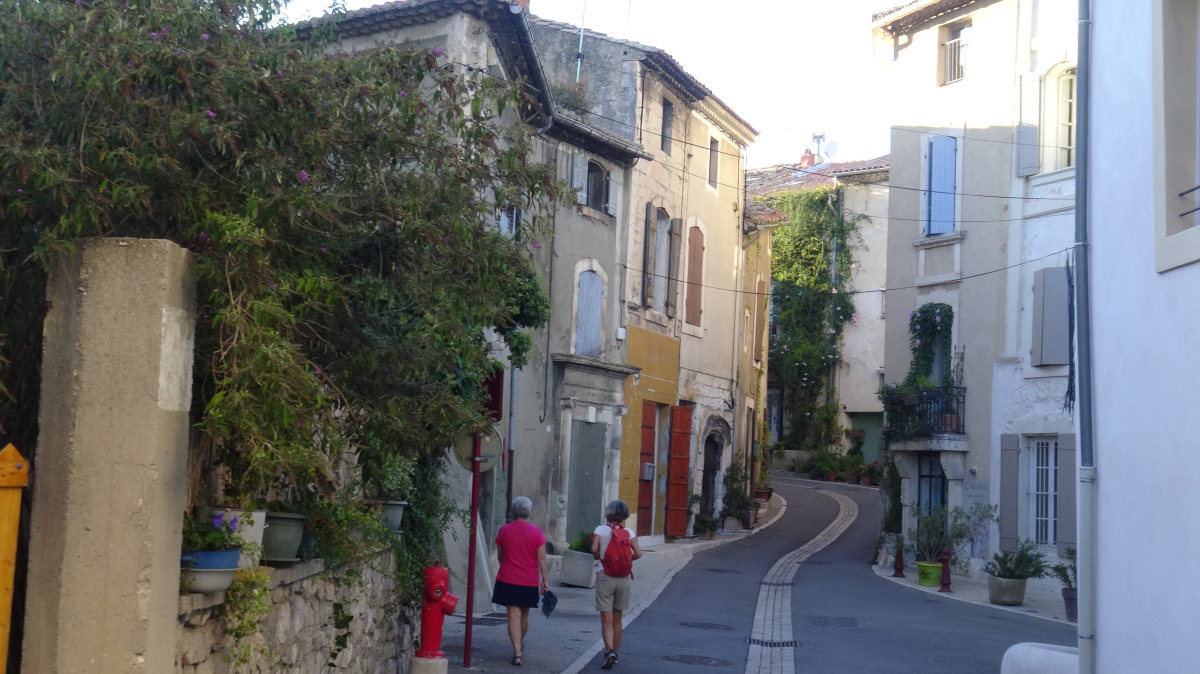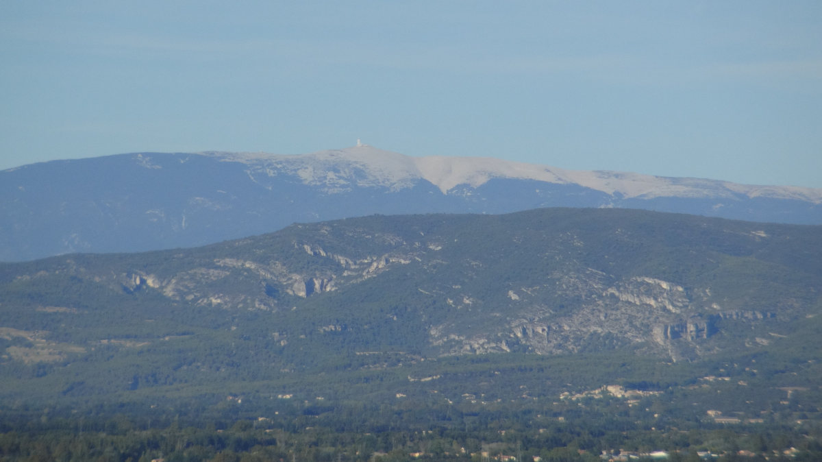 Retrouvailles chaleureuses, déjeuner bavard, puis, alors qu’une sieste serait la bienvenue, ils nous entraînent visiter leur village, mais d’abord la colline qui le surmonte d’où l’on voit notamment le Mont Ventoux ; ouf, c’est haut, bien dans le ton de notre voyage ! Et c’est beau.