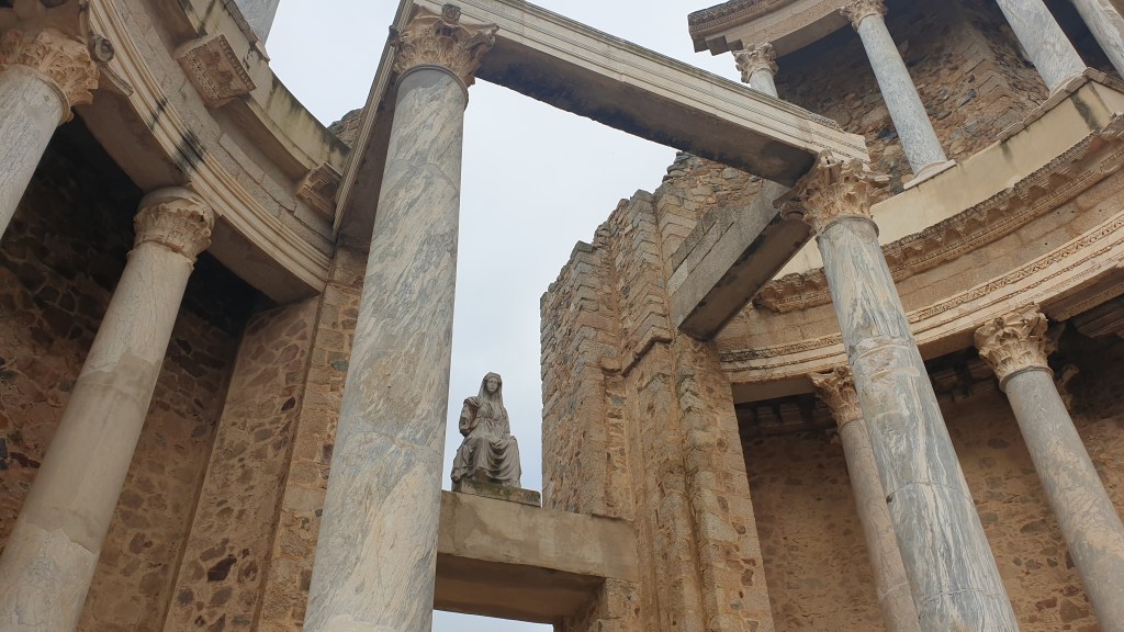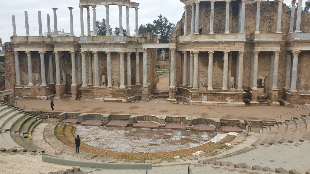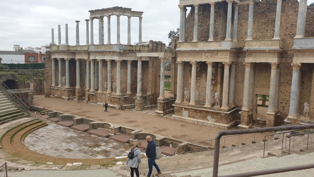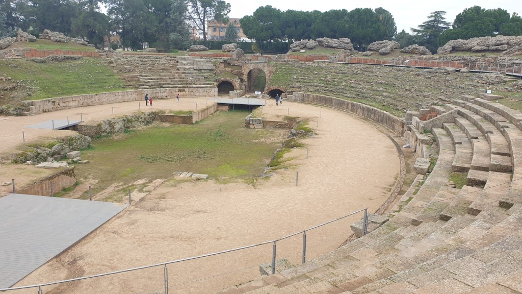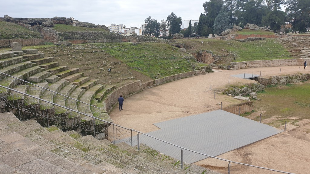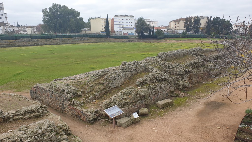 Ceci mettait fin à une bien belle journée qui avait commencé à Béjar où nous avions passé une très bonne nuit. Nous primes (d’ancienneté …) la route jusqu’à Mérida où nous arrivâmes vers midi pour constater qu’en fait d’Espagne, nous avions voyagé jusqu’à la Rome antique. Nous partîmes aussitôt à la découverte, commençant par le Circo, sorte d’hippodrome ou les quadriges s’affrontaient …