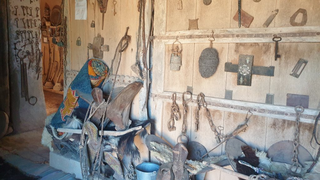 Nous finissons par en sortir et faire nos courses, puis déjeuner. Ensuite, quelques kilomètres plus loin, nous visitons un musée caravanserail, arts et traditions populaires. Puis direction camping, apéro, dîner maison (ouf), TV et blog, voilà. A demain
