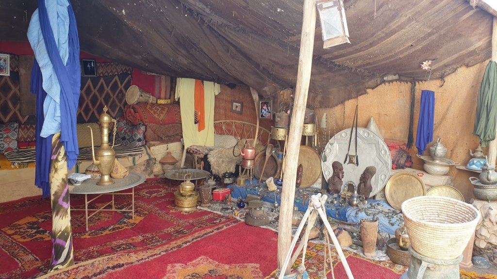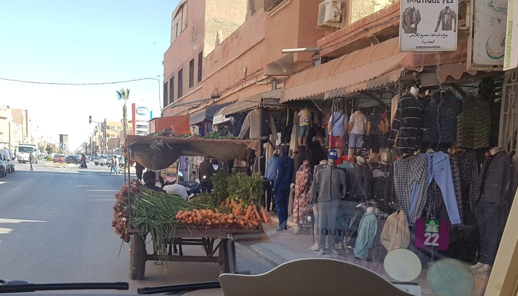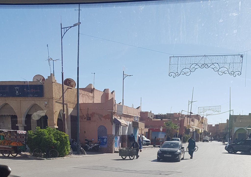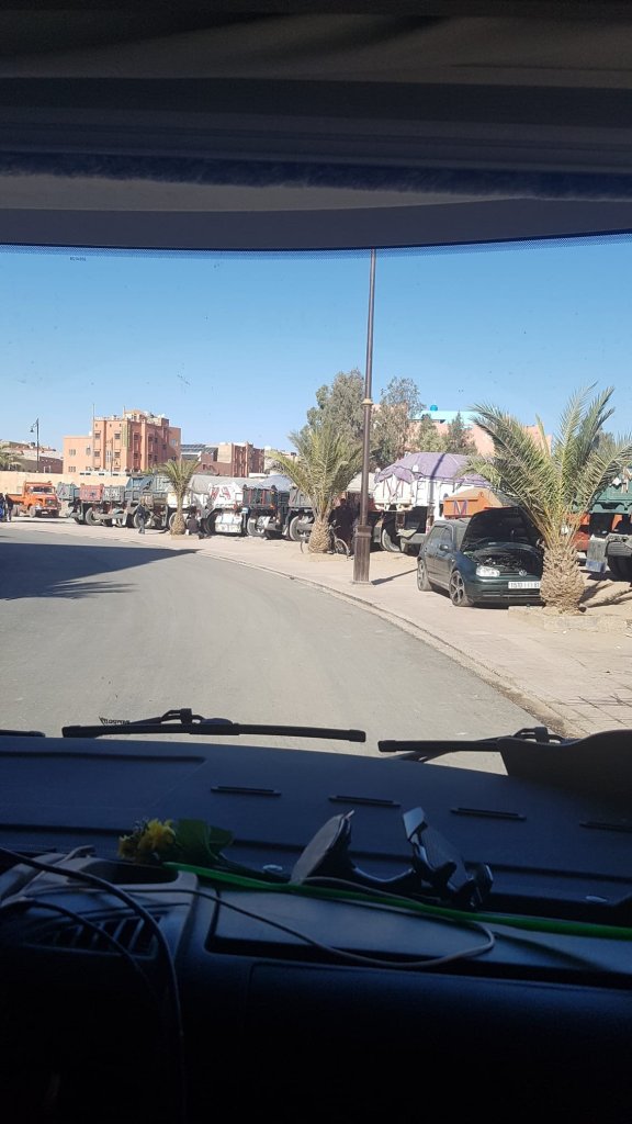 Et la journée alors ? Journée assez cool, 200 km, départ 9h30, nous refaisons la route par Tan Tan et Guelmin. A Guelmin, nous nous perdons un peu dans des rues très animées pour trouver l’hyper Marjane dont l’adresse gps était erronée. Chaud, chaud…