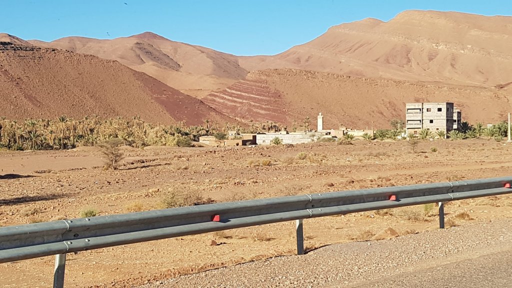 Alors aujourd’hui la destination était Zagora, 123 km. Nous avons préféré un itinéraire différent 227km, une belle balade dans l’Atlas, pour le plaisir de le route. Je ne détaille pas les lieux direction Tazenahrt, puis Agdz et fin par la vallée du Draa, une merveille. Je vous laisse avec les photos. La grande plante est de l’euphorbe, tellement toxique et urticante que même les chameaux lui foutent la paix.