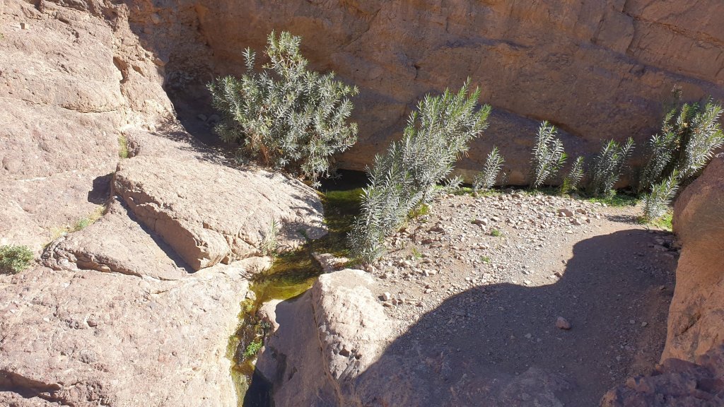Mais donc hier nous avons quitté le Camp Cedrar par une très jolie route de montagne qui nous a conduit d’abord, peu après Agdz, à la « cascade » de tinzghi, Switch du Draa, une merveille déjà vue en 2020 a l’époque avec un peu plus d’eau. Une fois les cc garés sur le grand parking, on descend à la source et voilà, on déguste ce bonheur simple. Après déjeuner, on reprend la route aux vues à couper le souffle qui nous conduit jusqu’à plus de 1600m d’où on aperçoit les neiges du Haut Atlas (>4000m). Puis on descend en douceur à Ouarzazate, et voilà.