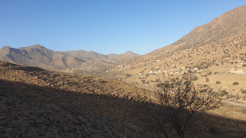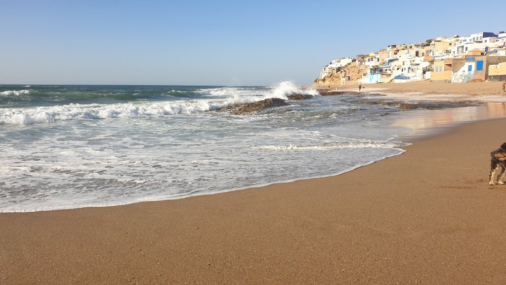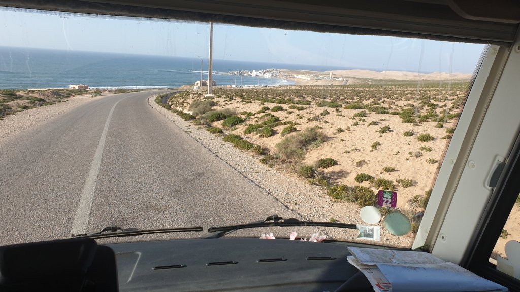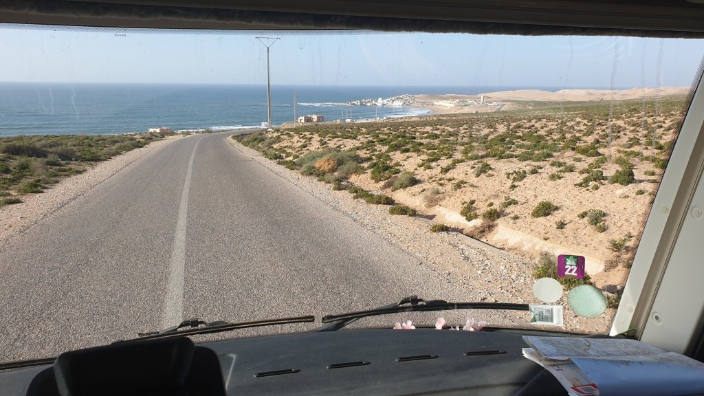 Adieu Tafraoute, ses Babouches et ses beignets, adieu l’anti-atlas et ses belles vallées vertigineuses, retour à l’océan, de haut en bas.