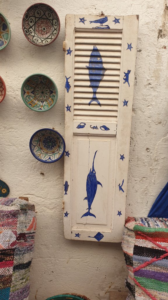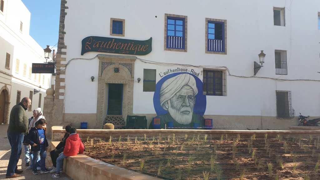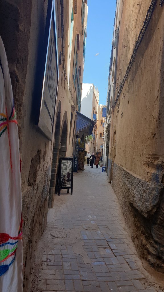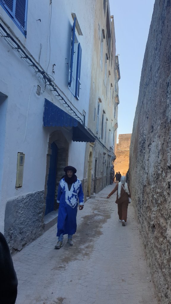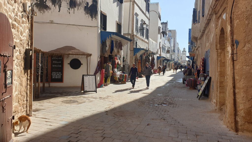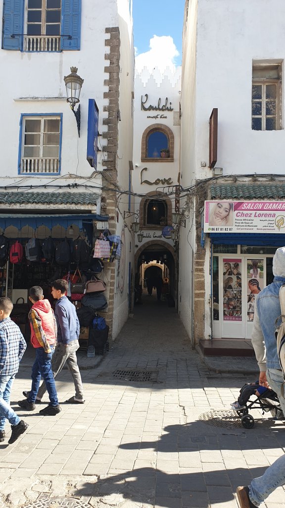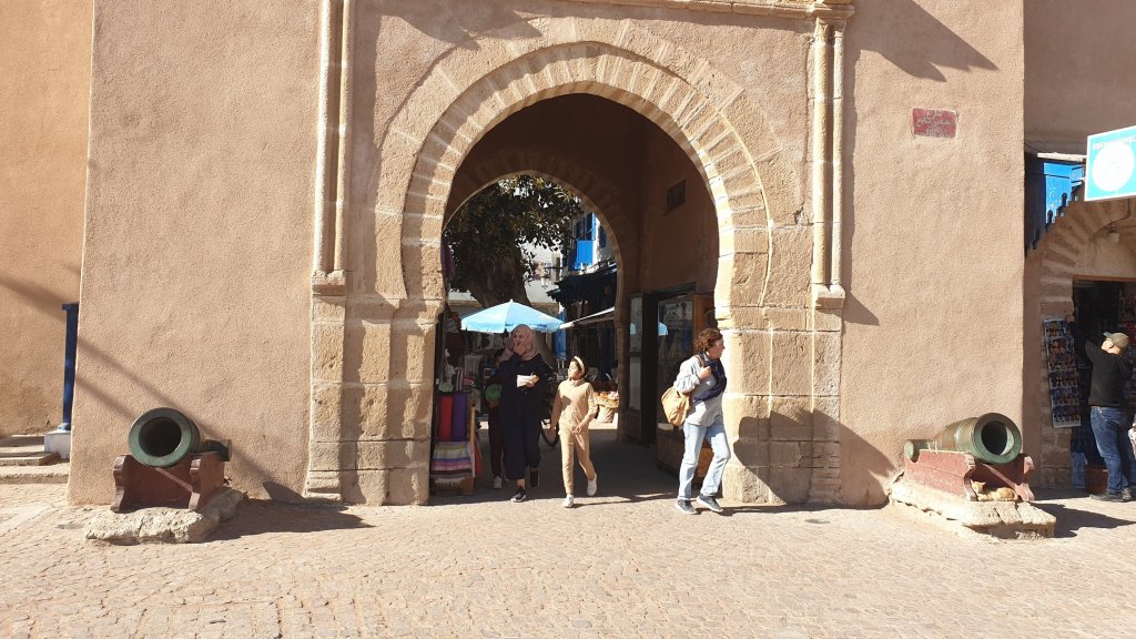 Ça a même bien été. Une jolie journée dans l’ancienne Mogador grâce au soleil et malgré le vent. Nous sommes partis à 10h du matin de notre base du jour à Sidi Kaouki dans un beau minibus-taxi que nous avions commandé : 500DH (45€) pour nous (8 personnes) conduire à Essaouira (27 km) et nous ramener le soir à l’heure de notre choix, soit un peu moins de 6€ par personne l’aller-retour, une fortune !