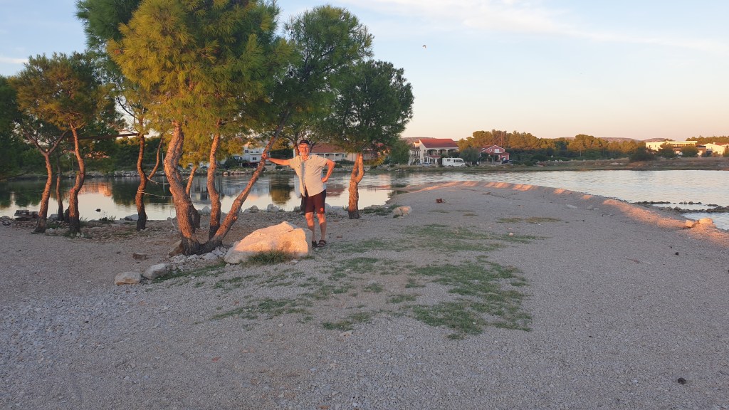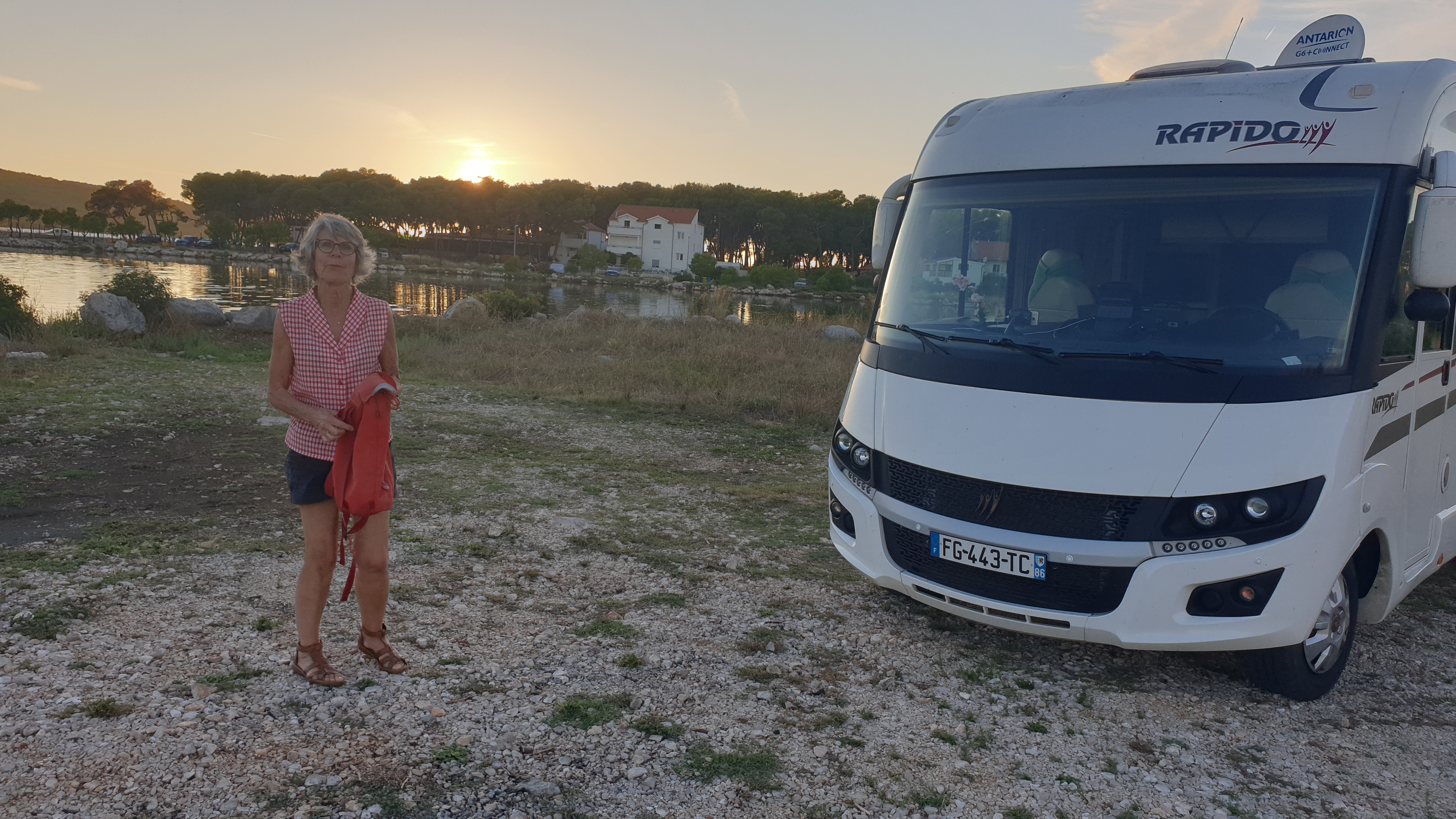 En fin d’après midi, c’est quand même un peu épuisé que j’ai garé le camping car au bord de l’eau près de Sibenik dans le soleil couchant.