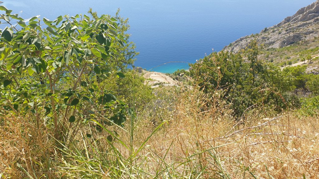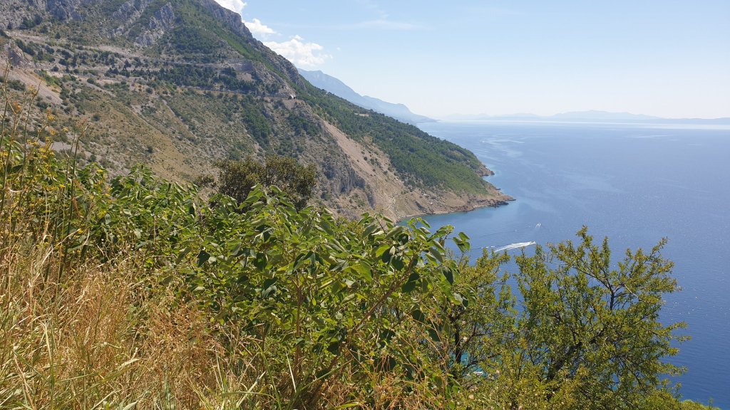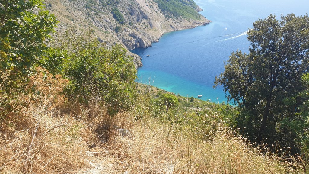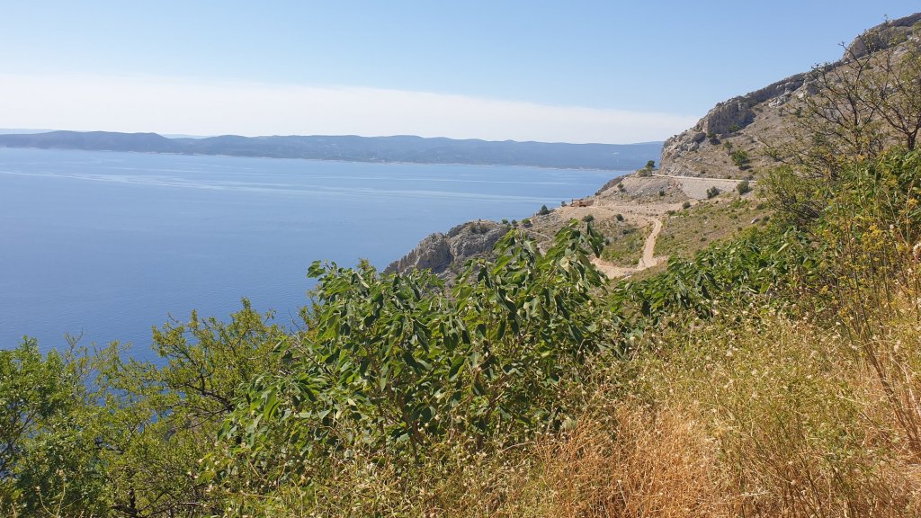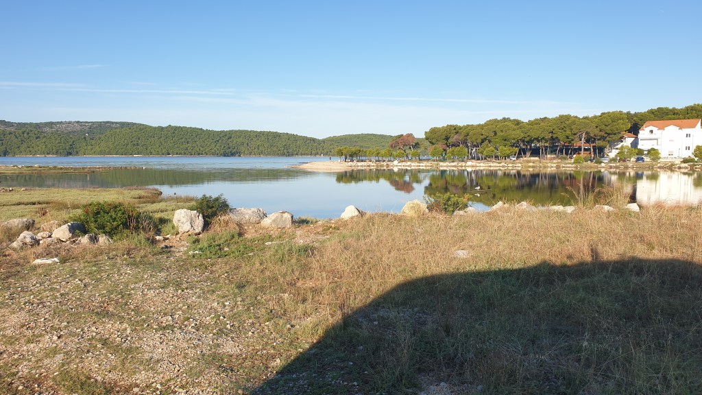 En témoigne l’image ci dessous, vue de notre porte au lever (7h50 je crois). Devant, l’Adriatique, derrière, une île (Zlarin), au milieu, une mouette (il faut zoomer) 😂 le bonheur !