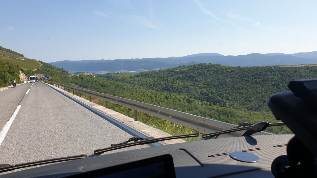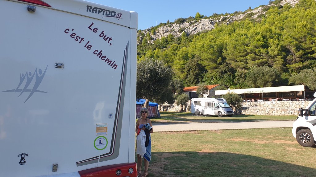 après un déjeuner dans le camping car et une petite sieste avec vue sur la vallée de la Neretva, nous sommes arrivés rapidement au but, un joli camping au fond d’une crique avec une plage plutôt sableuse et un peu moins de vent. Un ferry permet d’aller sur l’île de Mljet en face. Voilà, demain journée calme plage, balades. A demain donc.