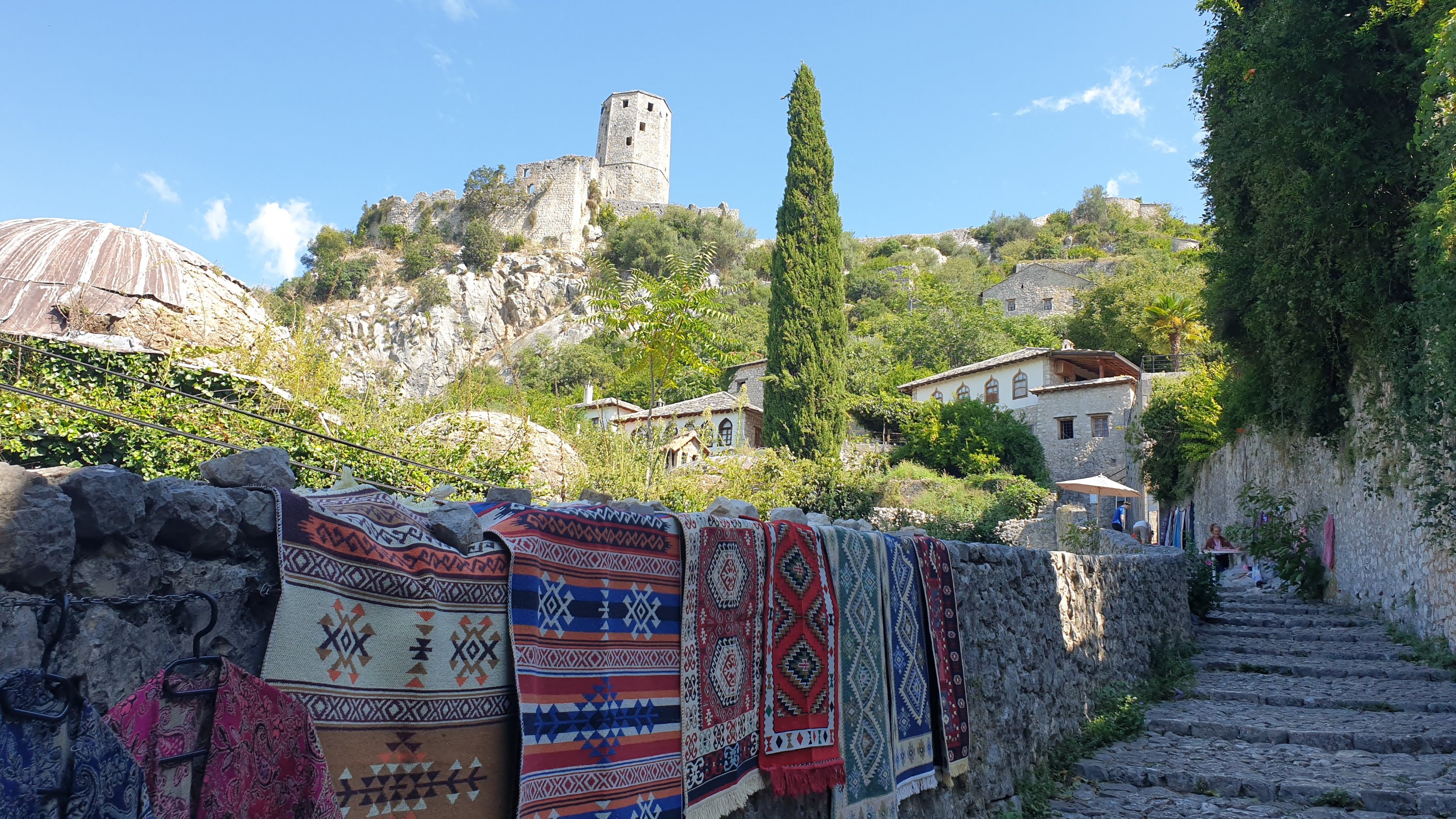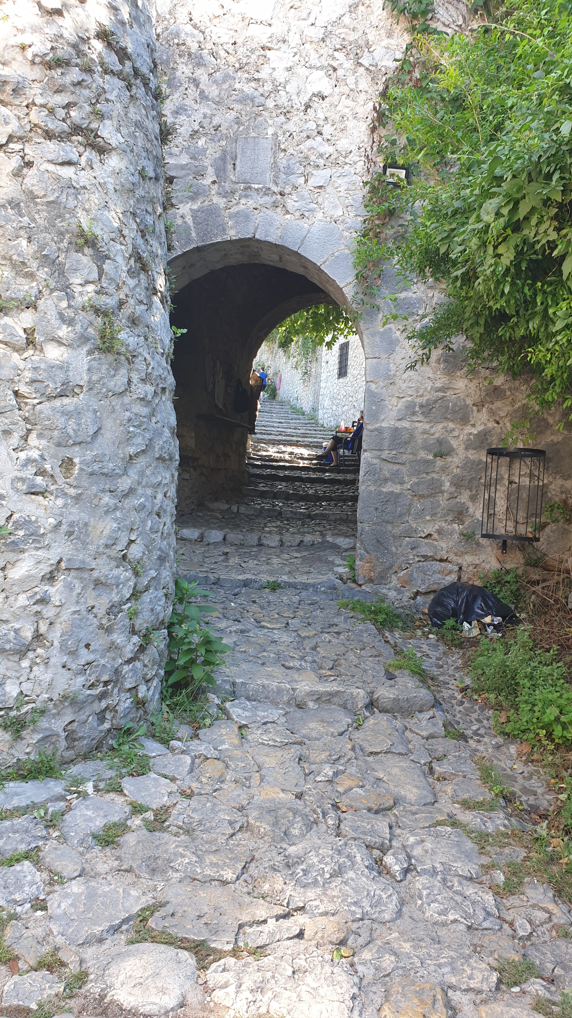 Nous avons passé une nuit très agitée à Mostar en raison du vent très fort qui nous a secoués toute la nuit. Nous sommes donc partis vers 10h pour Prapratno, soit une petite centaine de km. Comme nous avons le temps, nous avons fait un bel arrêt à Pocitelj ( prononcer Prochitel) que le guide Petit Futé qualifié fin des plus beaux villages du pays remontant à 1444. Il a comme beaucoup été totalement détruit en 1993 par les milices Croates et restauré par la suite. Le visiter se mérite, car il faut escalader le piton sous lequel serpentent les ruelles pavées. Heureusement il fait moins chaud ici qu’en France (28-30). Voici donc les images récoltées :