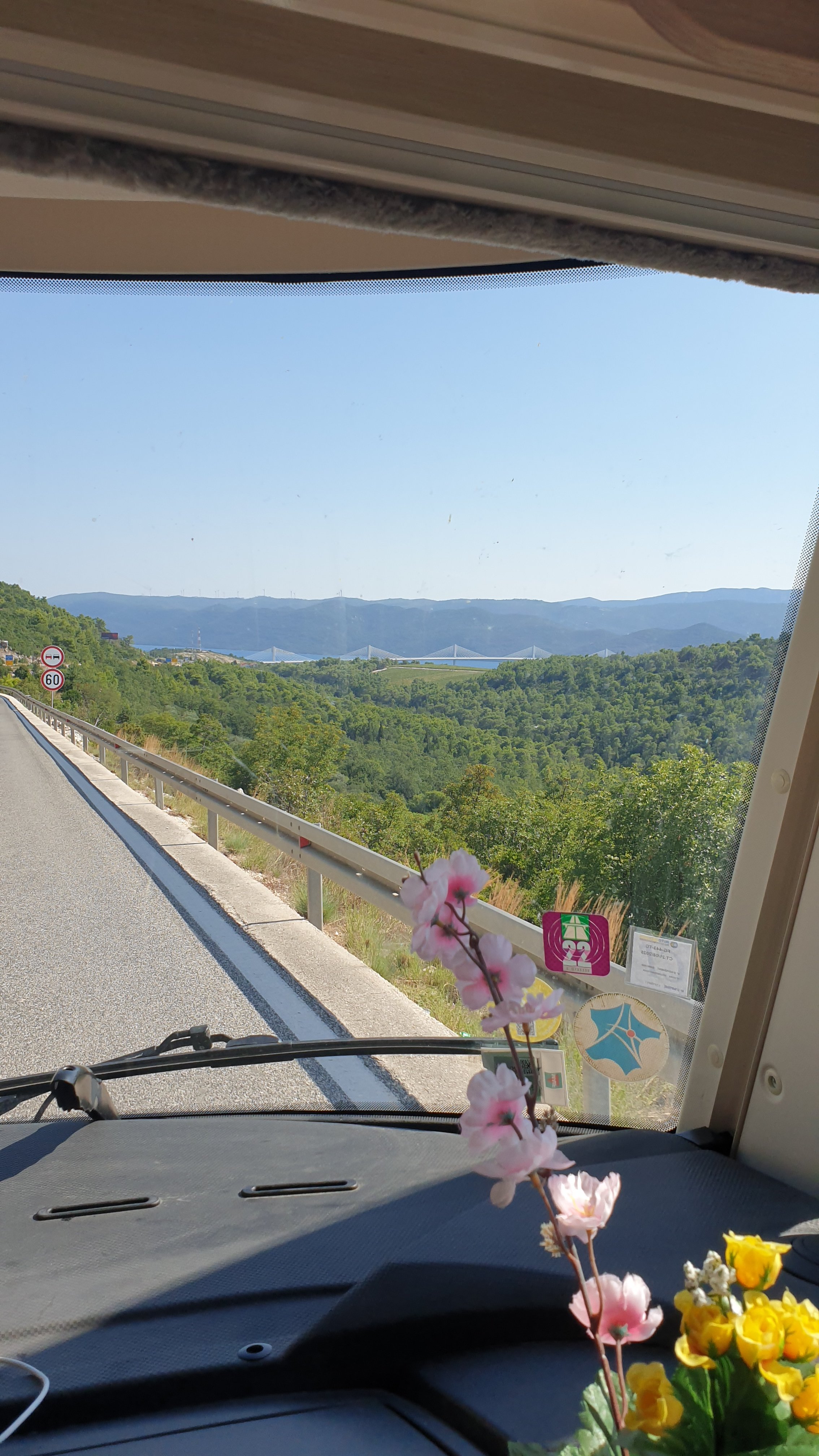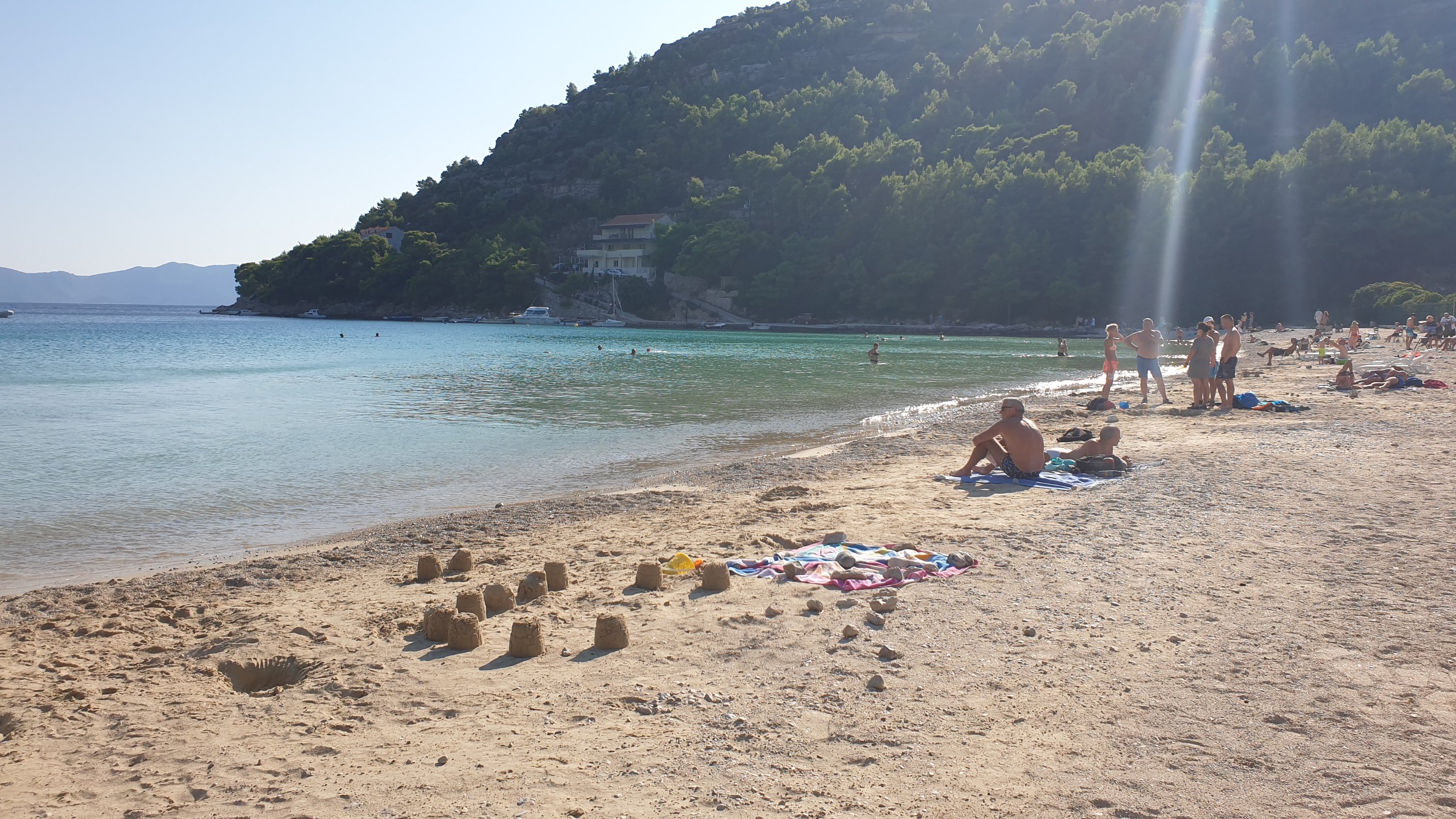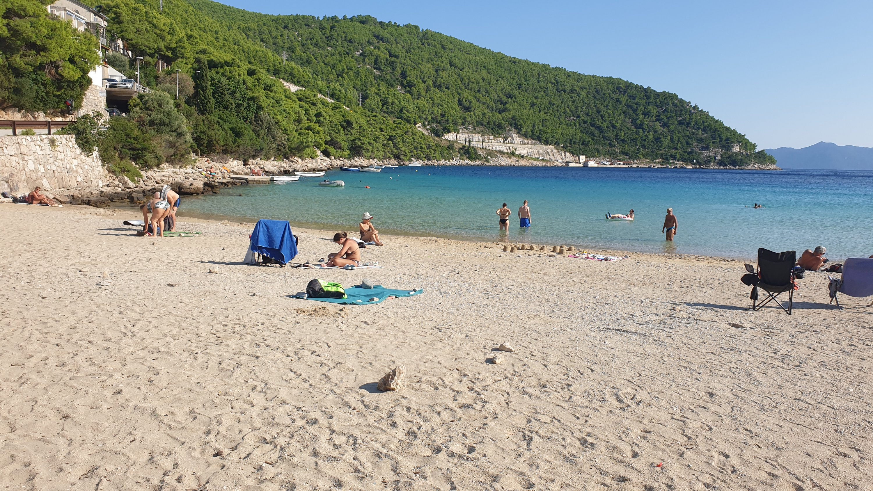 après un déjeuner dans le camping car et une petite sieste avec vue sur la vallée de la Neretva, nous sommes arrivés rapidement au but, un joli camping au fond d’une crique avec une plage plutôt sableuse et un peu moins de vent. Un ferry permet d’aller sur l’île de Mljet en face. Voilà, demain journée calme plage, balades. A demain donc.