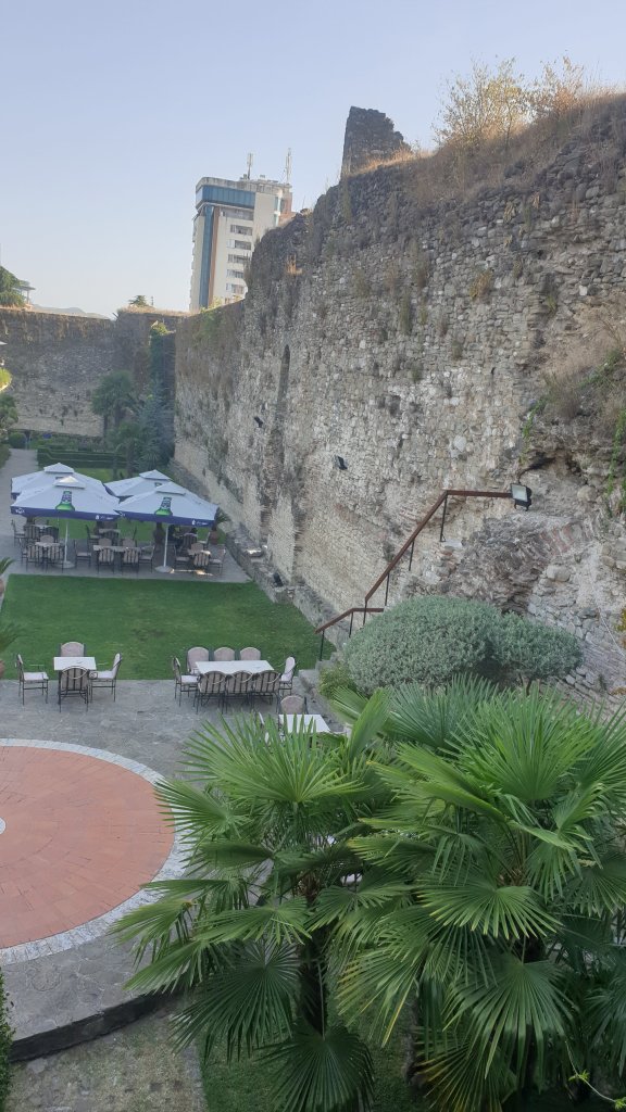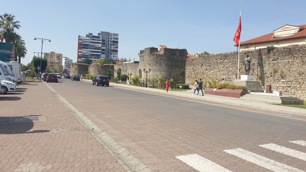 Nous reprenons la route vers Elbasan où nous arrivons sur le coup de midi ; nous déjeunons rapidement avant de nous regrouper autour de la guide du jour qui va nous faire visiter la ville ancienne derrière ses remparts. Jolie visite malgré la chaleur (34°). D’abord le parc aux nombreux vestiges archéologiques,