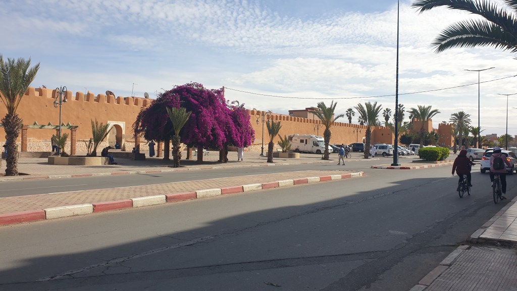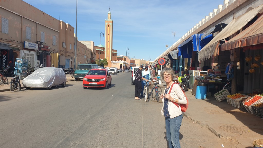 Partis de Aourir, nous avons retraversé Agadir du Nord au Sud, innombrables ronds points où la priorité est un combat à haut risque… 2xdeux voies partout, de la police aussi, le groupe a décroché un PV vitesse (150 Dirhams) et un PV ceinture (300). Nous rien, ouf.